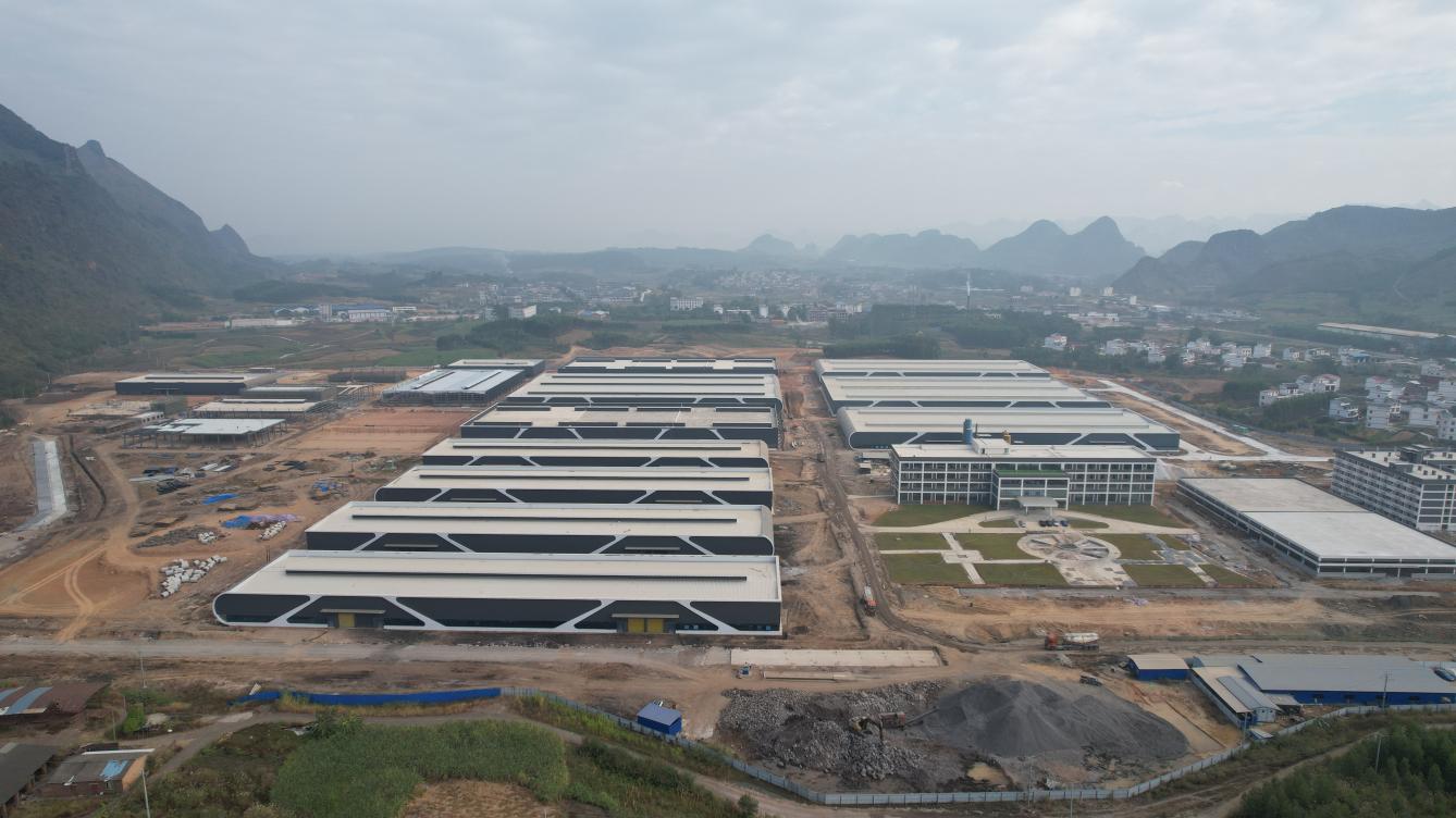 粤桂协作三江口(忻城)茧丝绸产业园(一期项目)鸟瞰图。