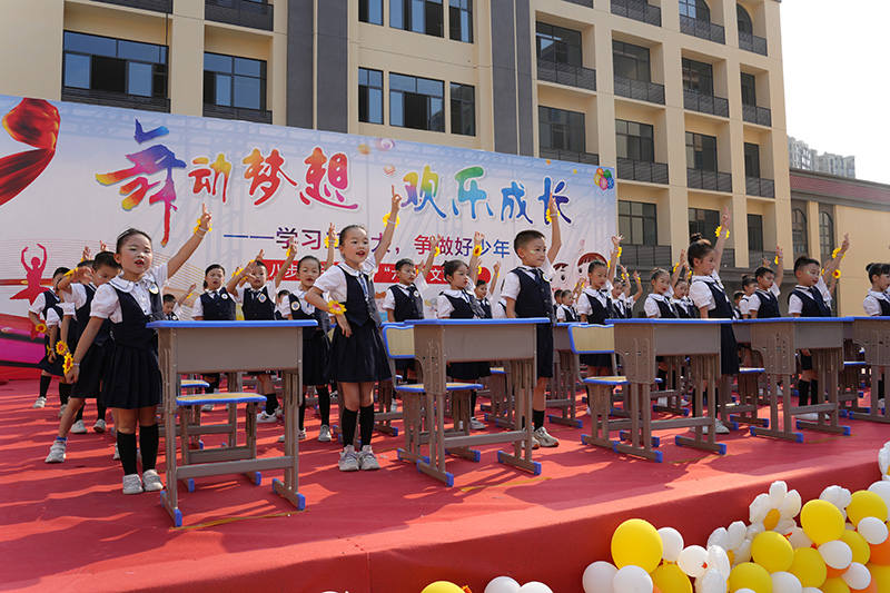为迎接“六一”国际儿童节,贺州市八步区龙山小学举行了“童心飞扬 绽放光彩”2023年新队员入队仪式。198名新队员光荣地加入了中国少年先锋队,台下的同学用热烈的掌声向新队员们表示祝贺。