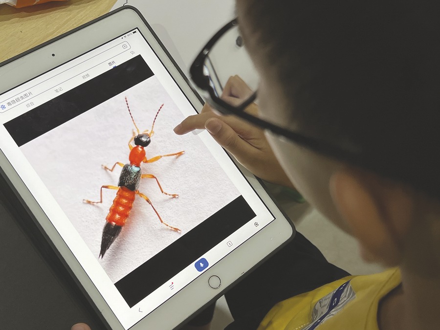 小学生上网了解隐翅虫危害 (记者 宋延康 摄)