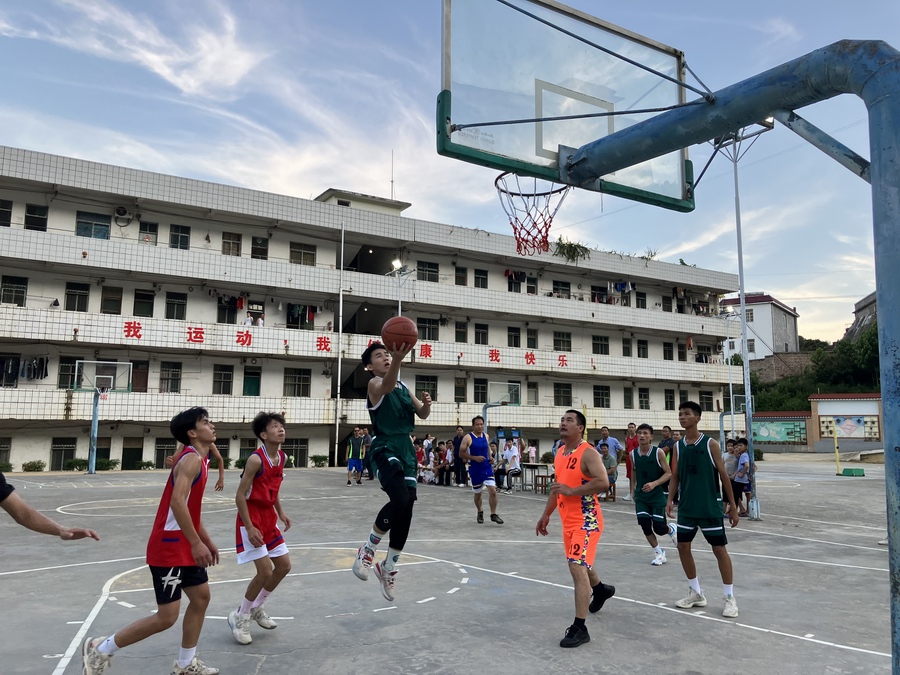 7月10日傍晚,桂平市中沙镇第一初级中学的篮球场上围满了群众,时不时传出阵阵掌声,现场气氛十分热烈。这里正在进行一场由中沙镇沙坡村对阵太平村的篮球赛。