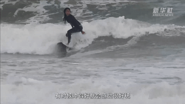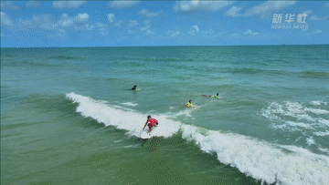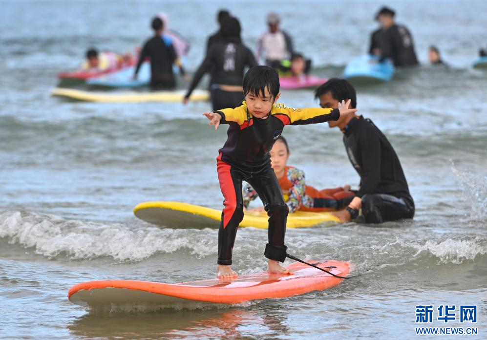 而技巧娴熟的“浪友”则在海面上乘风破浪