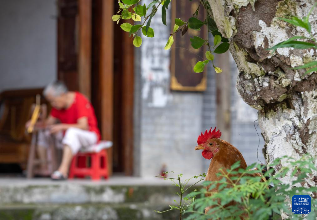 ↑8月2日,在靖西市旧州村,市级非遗传承人王秀芬走出她的绣球文化体验店。