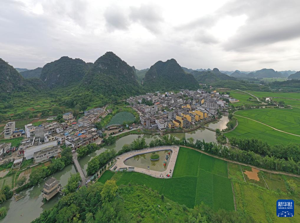 ↑这是广西靖西市新靖镇旧州村(8月2日摄,无人机照片)。
