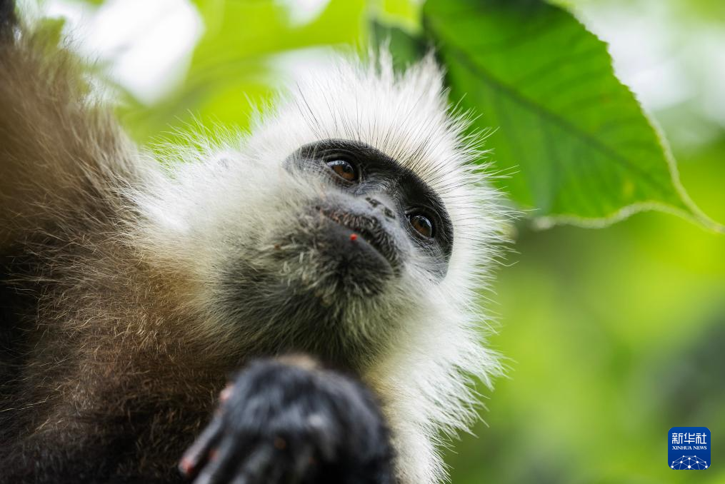 一只白头叶猴在食用鲜果(8月4日摄)。