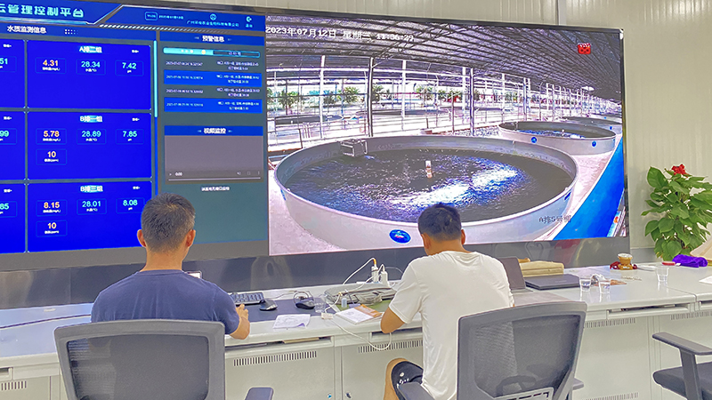 在基地的操控室内,“智慧养殖大数据操作平台”完整、清晰的为我们展示了“数字”养殖的每一个流程、环节、数据收集、分析及结果运用。技术人员和养殖人员严格按照这些数值进行投喂、观察和日常管理,这种养殖管理与传统养殖所需的劳动力明显减少,且作业强度更低。