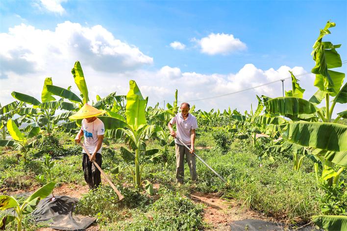 基地负责人覃建铭表示,在镇村干部、人大代表的帮助协调下,他去年流转了320多亩山地种植沙田柚。由于沙田柚树要4年多才能挂果,为最大限度发挥土地效应,覃建铭将空地“用活”,套种短平快的经济农作物。去年,基地套种280多亩辣椒喜获丰收,亩产量达750公斤。今年,基地又套种了300亩粉蕉,预计明年9月便可收成,大大提高了土地利用率,实现一地双丰收。