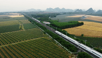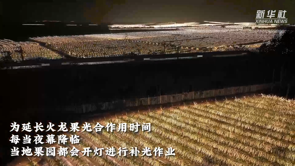 中秋国庆假期,在位于广西南宁市隆安县的全国最大火龙果连片种植基地,为延长火龙果光合作用时间,每当夜幕降临,当地果园都会开灯进行补光作业。夜晚当列车驶过种植基地时,车上乘客都会被景色吸引,纷纷拍照记录。列车行驶在“灯光星海”的果园中,好似一幅浪漫的穿越图景。