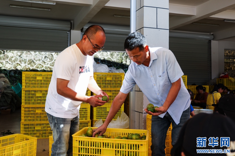 公司负责人查看四会柑品质。