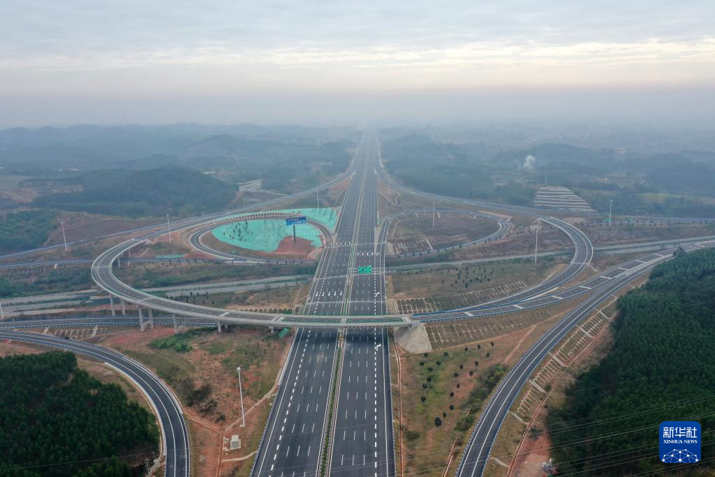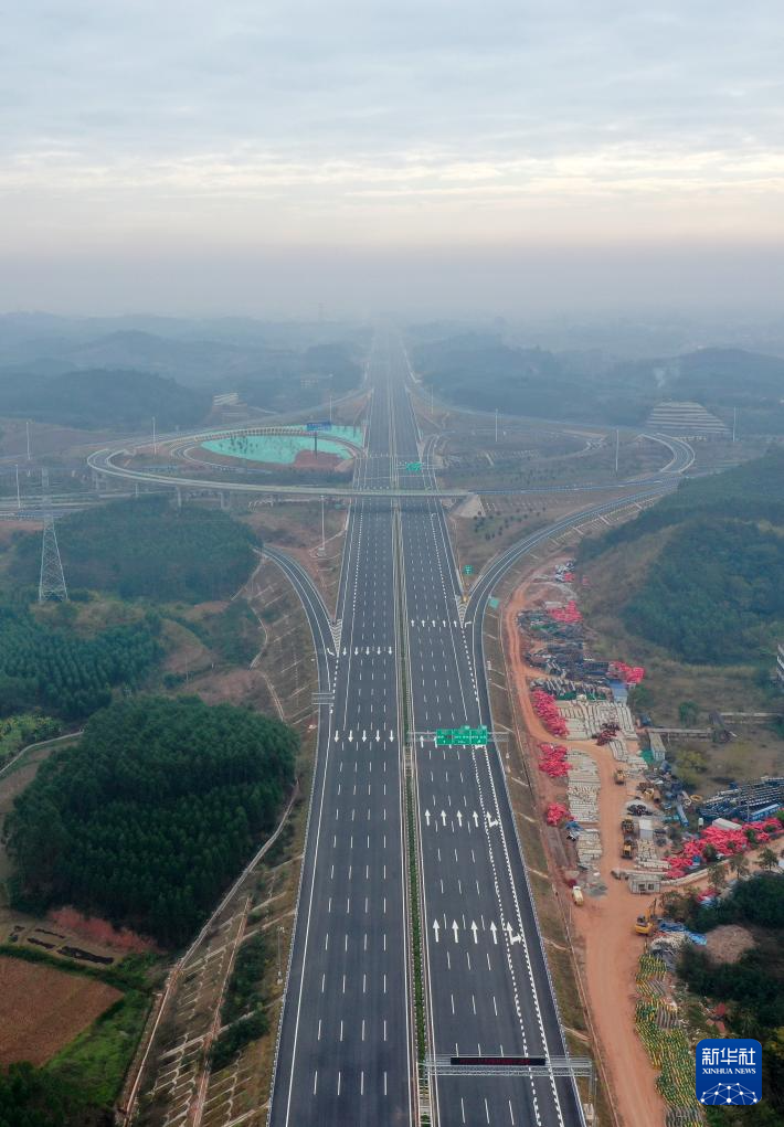 这是12月31日拍摄的广西岑溪至大新高速公路横州至南宁段(无人机照片)。
