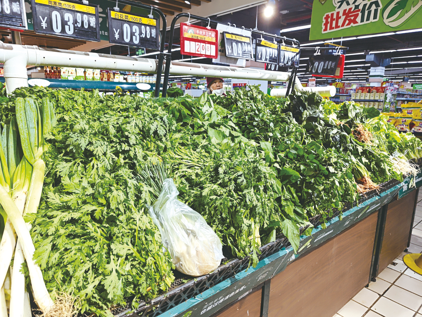 超市货架里白花菜等“春菜”位置显眼 黎兆齐摄