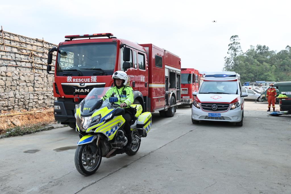 “警卫医消”联动机制道路交通事故现场应急救援综合演练现场。(受访者供图)