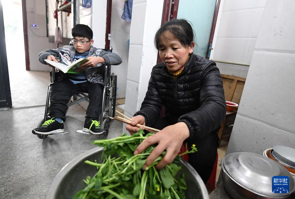 母子俩日常生活开支几乎都压在黄乜鲜一个人身上。她家里种有三亩田,只有节假日才能回去打理。平时,她在照顾儿子之余,在学校捡拾废旧物品卖钱补贴生活费。“再苦再累也要咬牙坚持下去。”黄乜鲜说。
