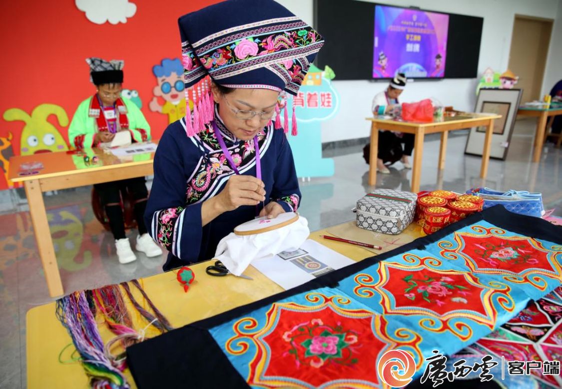 蓝茜在进行刺绣。图片来源:广西云客户端