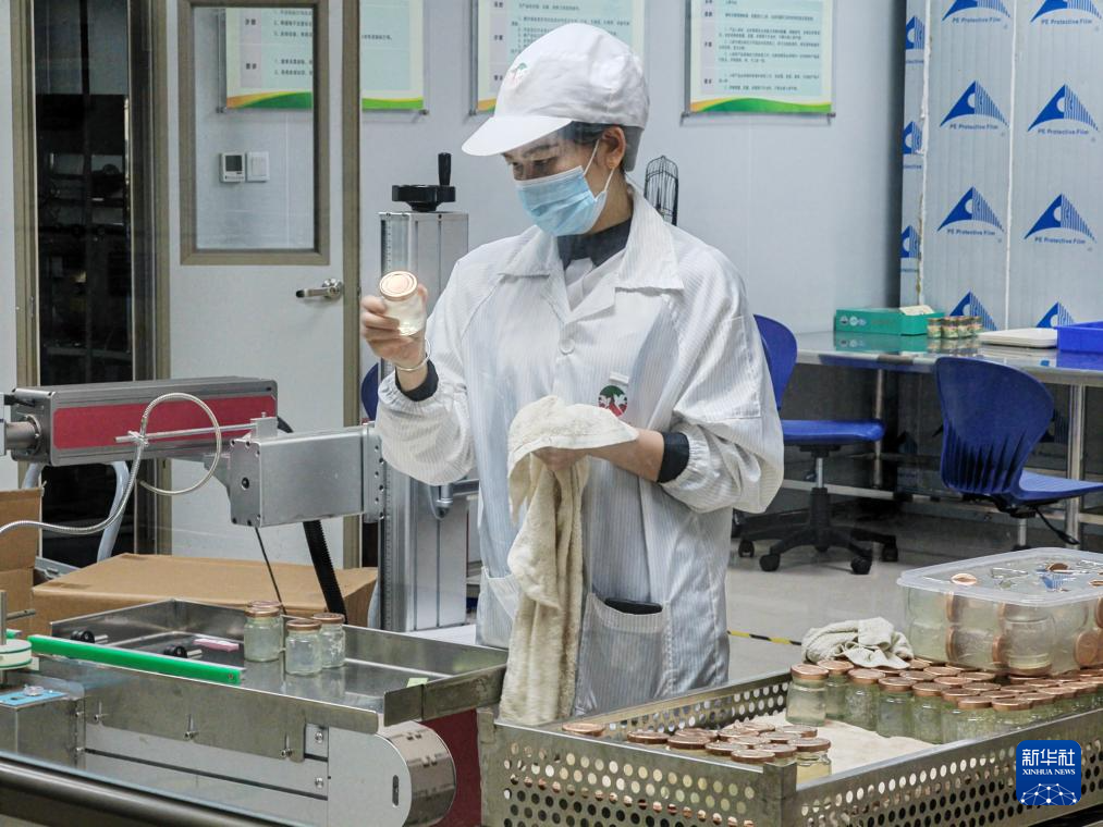 4月22日,在广西中马金谷燕生物科技有限责任公司的无尘车间里,工人在检查燕窝加工产品。新华社记者 赵欢 摄