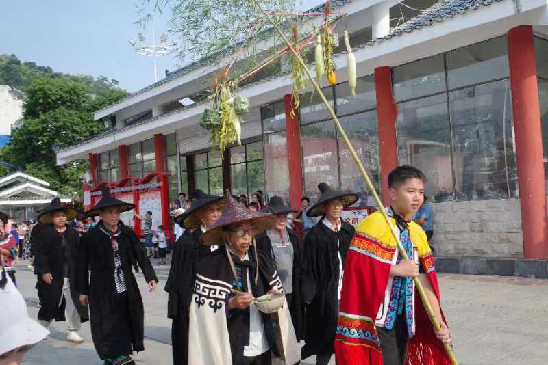 7月27日,在广西隆林各族自治县,人们正在举行彝族传统的“送布谷鸟”仪式。新华社记者 李欢 摄