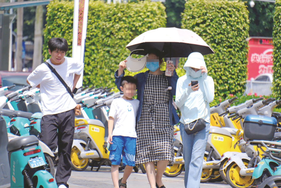 昨日,南宁太阳猛烈,市民出行做足防暑准备。 宋延康摄