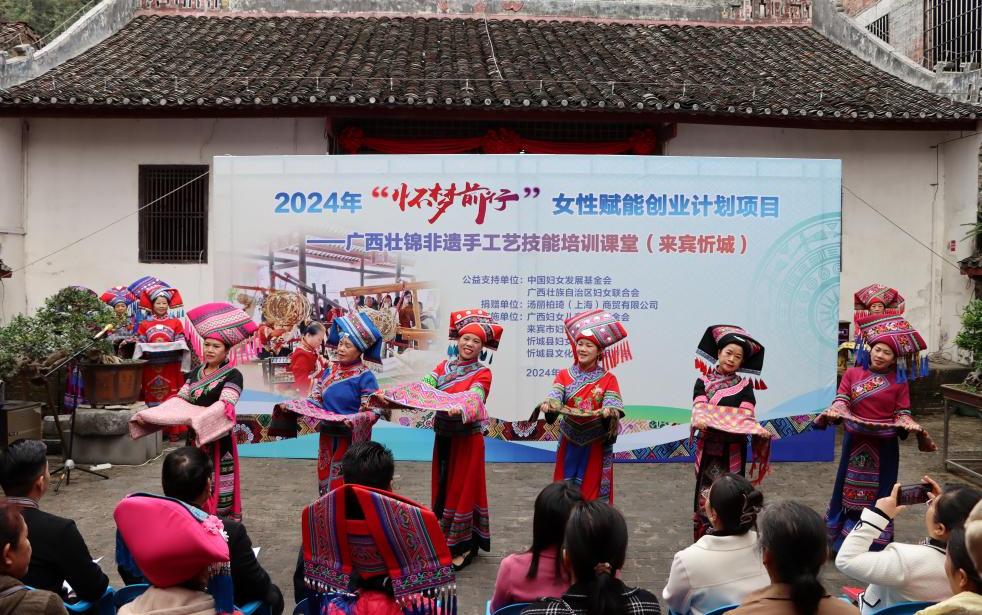 近日,由自治区妇联、中国妇女发展基金会、广西妇女儿童发展基金会等共同发起的“怀梦前行”女性赋能创业计划项目——广西壮锦非遗手工艺技艺培训活动在广西实施。