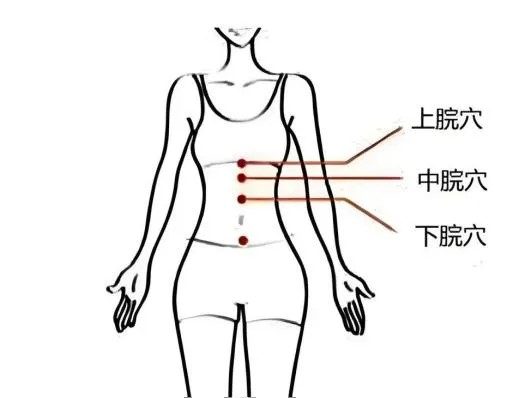 我们膝盖下面四指位置的穴位,是非常著名的足三里,这是一个祛湿、健脾胃非常好的穴位。因为“湿”和脾胃都有关系,所以中脘、上脘、下脘这些腹部上的穴位,也是可以健脾胃的。