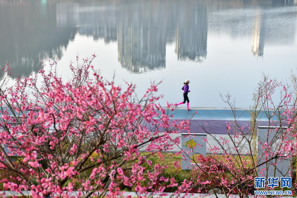 2月16日,健身爱好者在浙江省建德市一处绿道上跑步。新华社发(宁文武 摄)