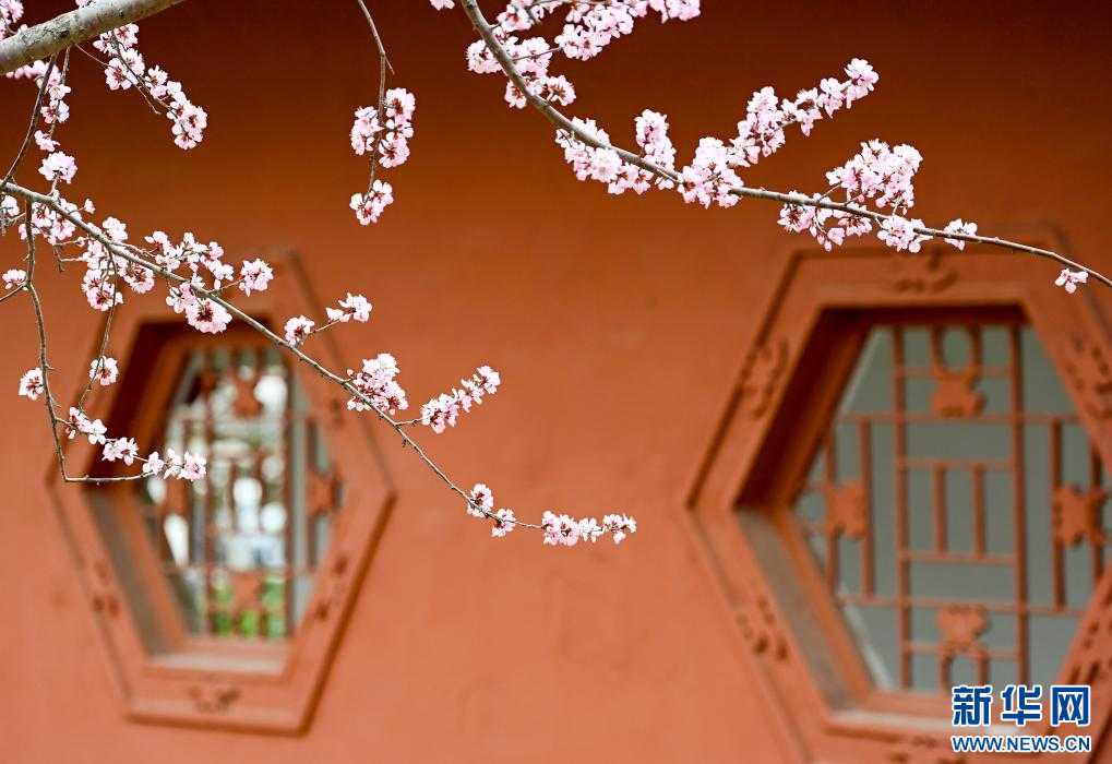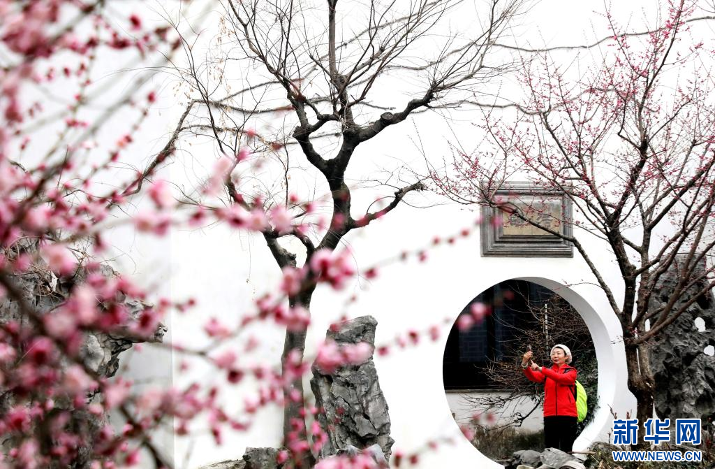 2月27日,游客在江苏苏州艺圃赏花游玩。新华社发(杭兴微 摄)