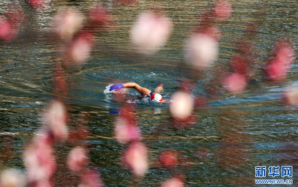3月5日,在北京左安门附近的南护城河,一名健身爱好者在水中游泳。新华社记者 费茂华 摄