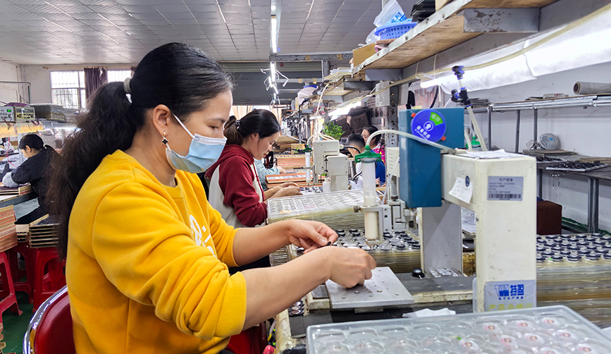 搬迁群众在安置区内的就业车间务工。人民网 付华周摄
