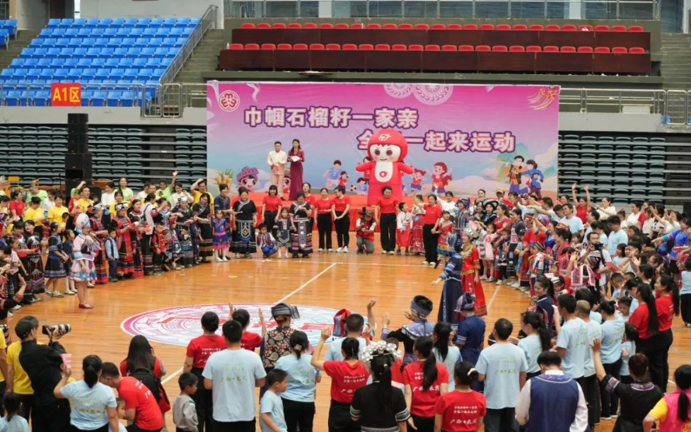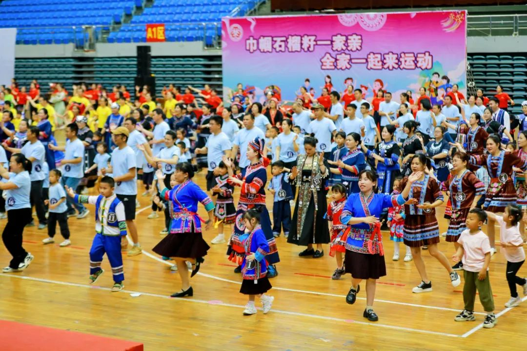活动特别设立的民族文化体验区成为亮点,壮锦织机前指尖翻飞,瑶绣针线里传承匠心,在壮族竹竿舞与瑶族黄泥鼓的韵律中,百组身着壮、汉、瑶、苗、侗等民族盛装的家庭进行文化展示,将“石榴籽”紧密相依的寓意转化为生动的实践场景。