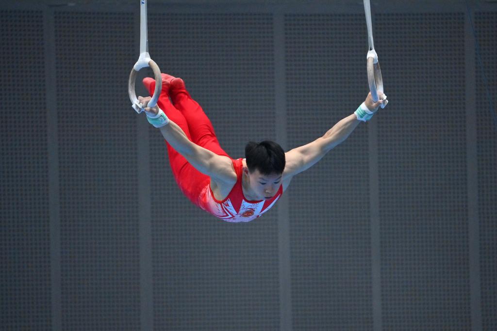 5月19日,杨皓楠在吊环比赛中。新华社记者 黄孝邦 摄