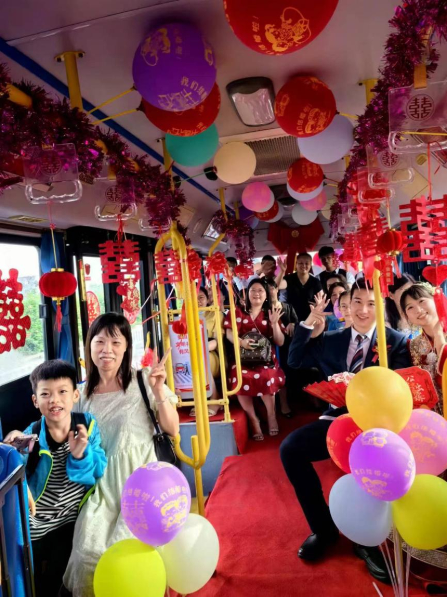 市民使用公交车举办婚礼,既保留喜庆氛围又节省开支。