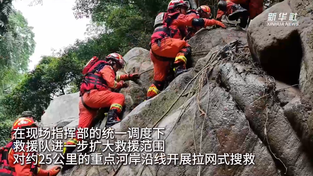 5月24日,广西龙胜各族自治县泗水乡三舍村的山洪灾害救援进入第二天,多方救援力量扩大搜救范围,持续开展拉网式搜索工作。截至5月24日18时,8名失联人员已搜救到4人,均无生命体征。目前,救援队正进一步扩大救援范围,对约25公里的重点河岸沿线开展拉网式搜救。