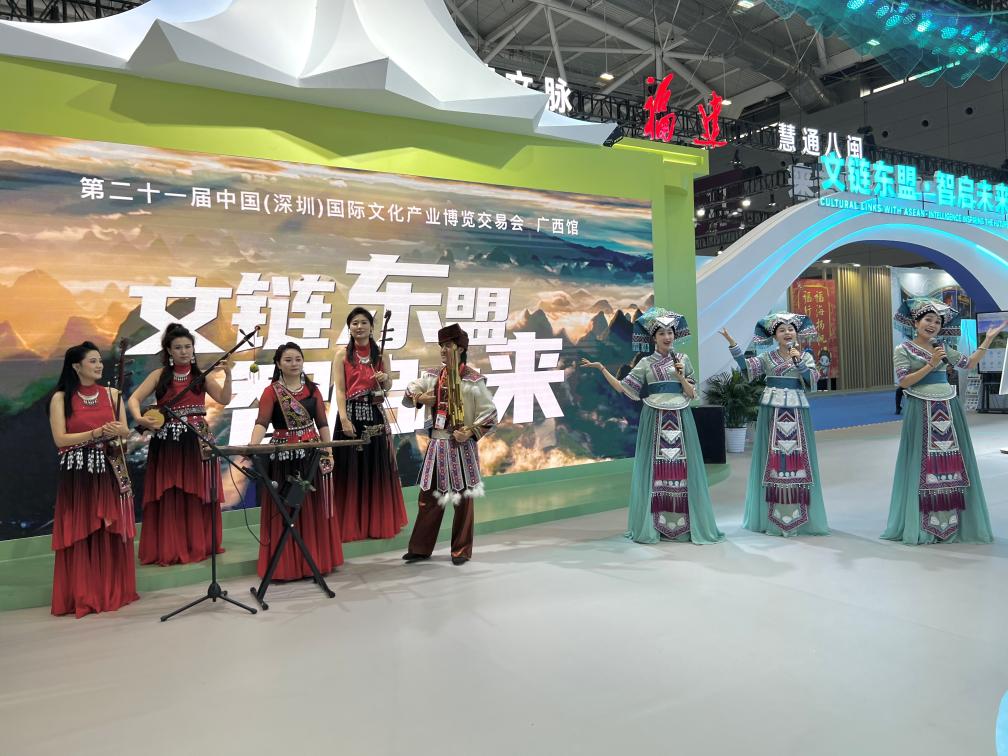 本次广西展馆以“文链东盟 智启未来”为主题,参展总面积达600平方米,聚焦文化科技、文化艺术视听、旅游康养、非遗文创,将前沿科技与地域文化元素深度融合,精心打造中国—东盟文化科技融合的交流平台。
