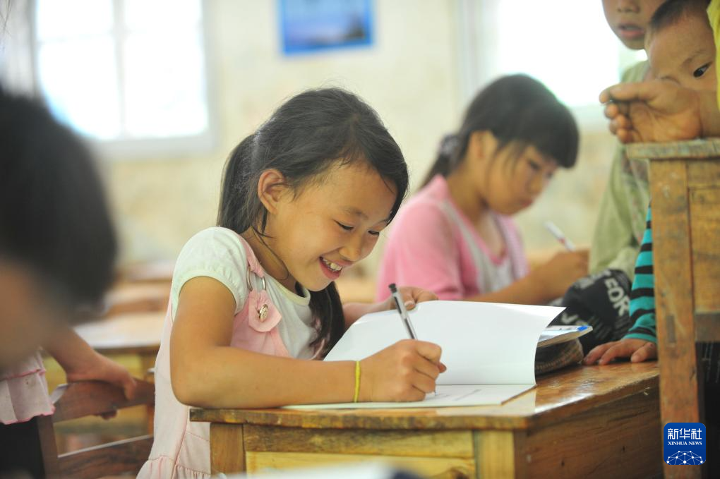 11岁的蒙秋艳在广西大化瑶族自治县板升乡弄雷小学教室里学习(2012年9月5日摄)。