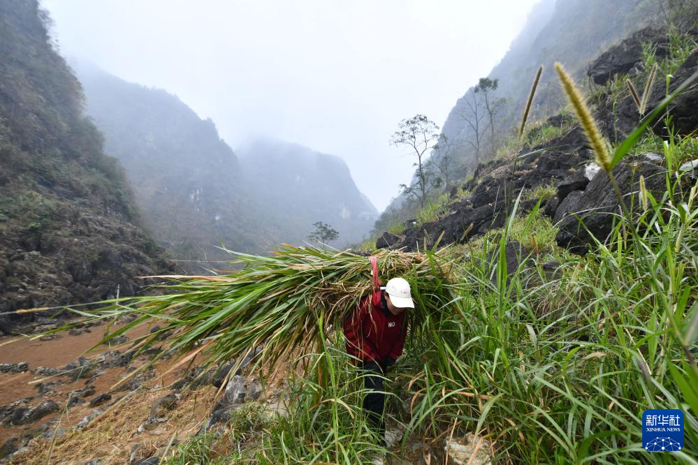 在广西大化瑶族自治县板升乡弄雷村哈宝屯,放假回家的蒙秋艳去田间劳作(2023年1月26日摄)。
