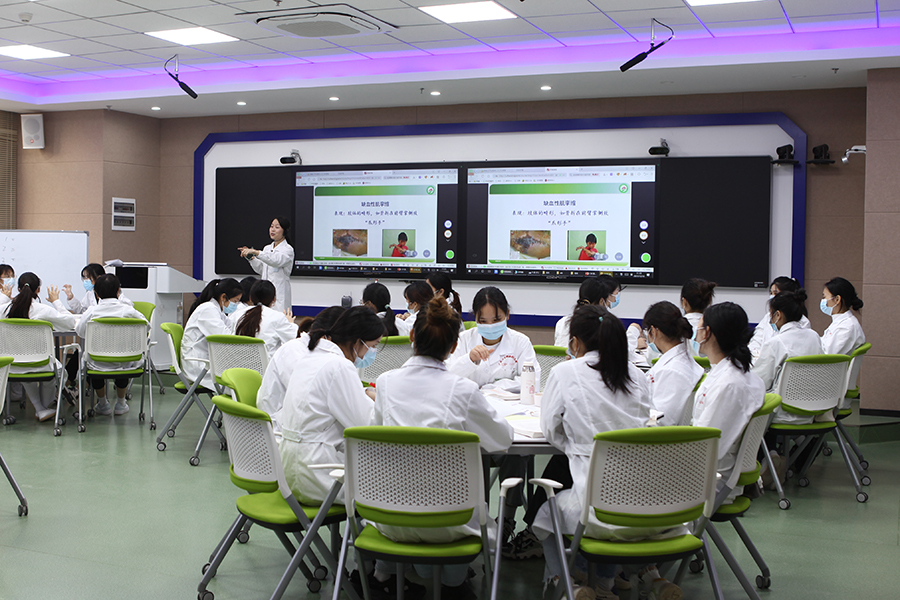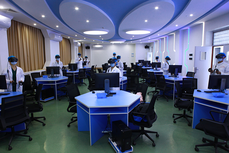 建设实训基地,提升实践教学水平。学校依托“AI+教育”理念,依托临床技能实训中心,开发了虚拟仿真教学系统、智能考核平台等数字化工具,建设“人工智能、虚实结合、模拟仿真、开放共享”的教学实训中心,为师生进行专业实践与工学结合创造条件,支撑临床医学专业群良性发展。