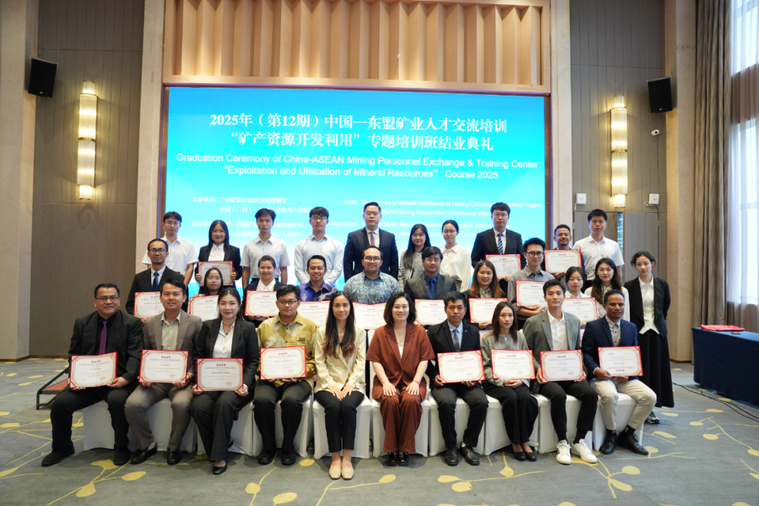 近日,2025年(第十二期)中国—东盟矿业人才交流培训“矿产资源开发利用”专题班在南宁结业。来自中国与东盟国家的23名学员完成为期3周的专题学习。