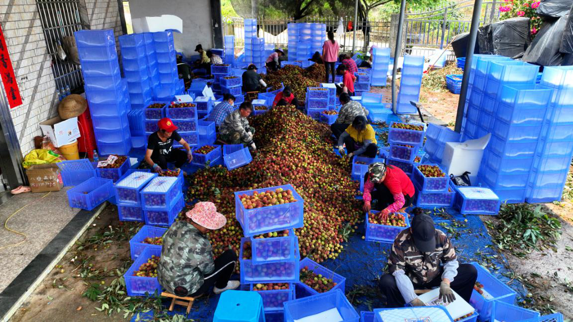 在不远处的荔枝收购点,20多名工人根据荔枝的品质进行分类、打包,由冷链车运往各地市场。收购商梁善基说,今年沙陂的荔枝品质普遍较好,深受外地消费者欢迎。