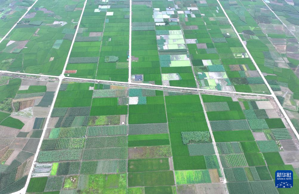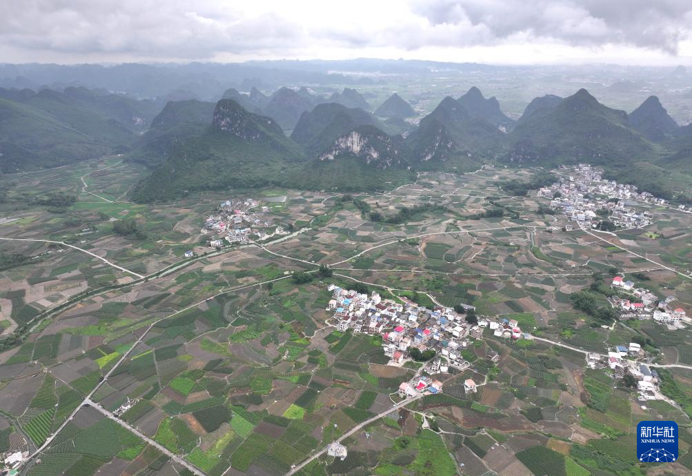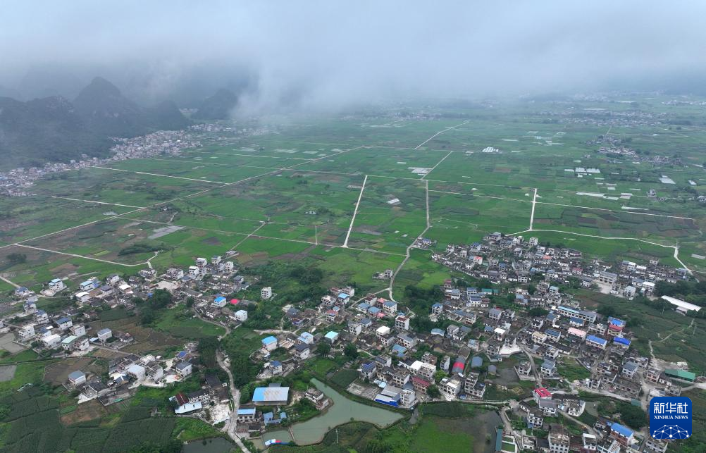 这是柳州市柳江区三都镇觉山村万亩香葱产业示范基地的雨后景色(无人机照片,6月17日摄)。