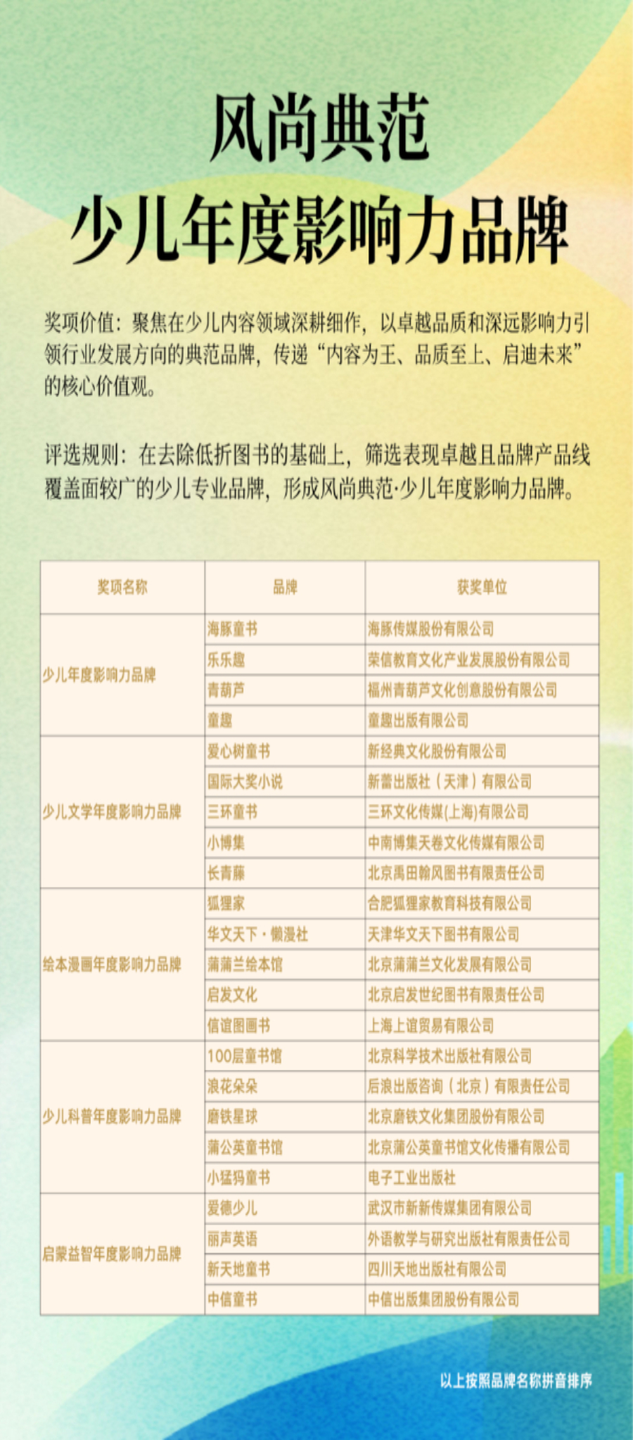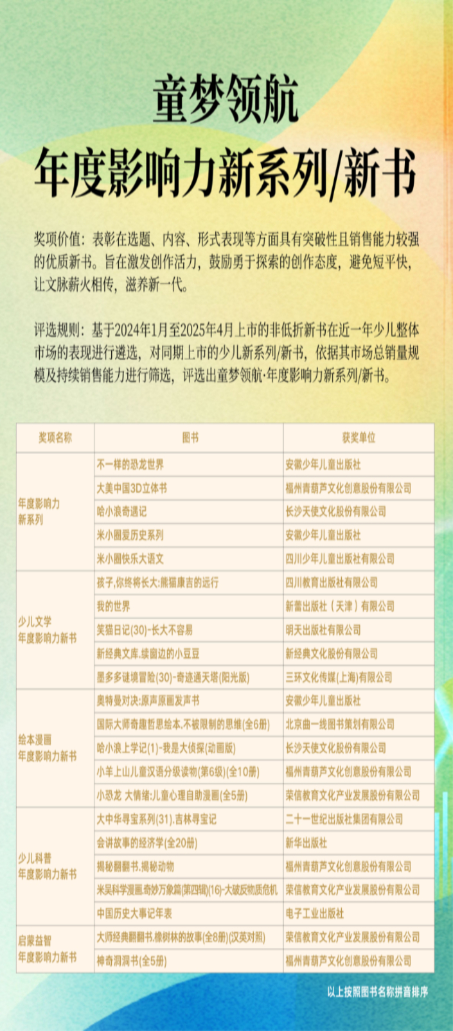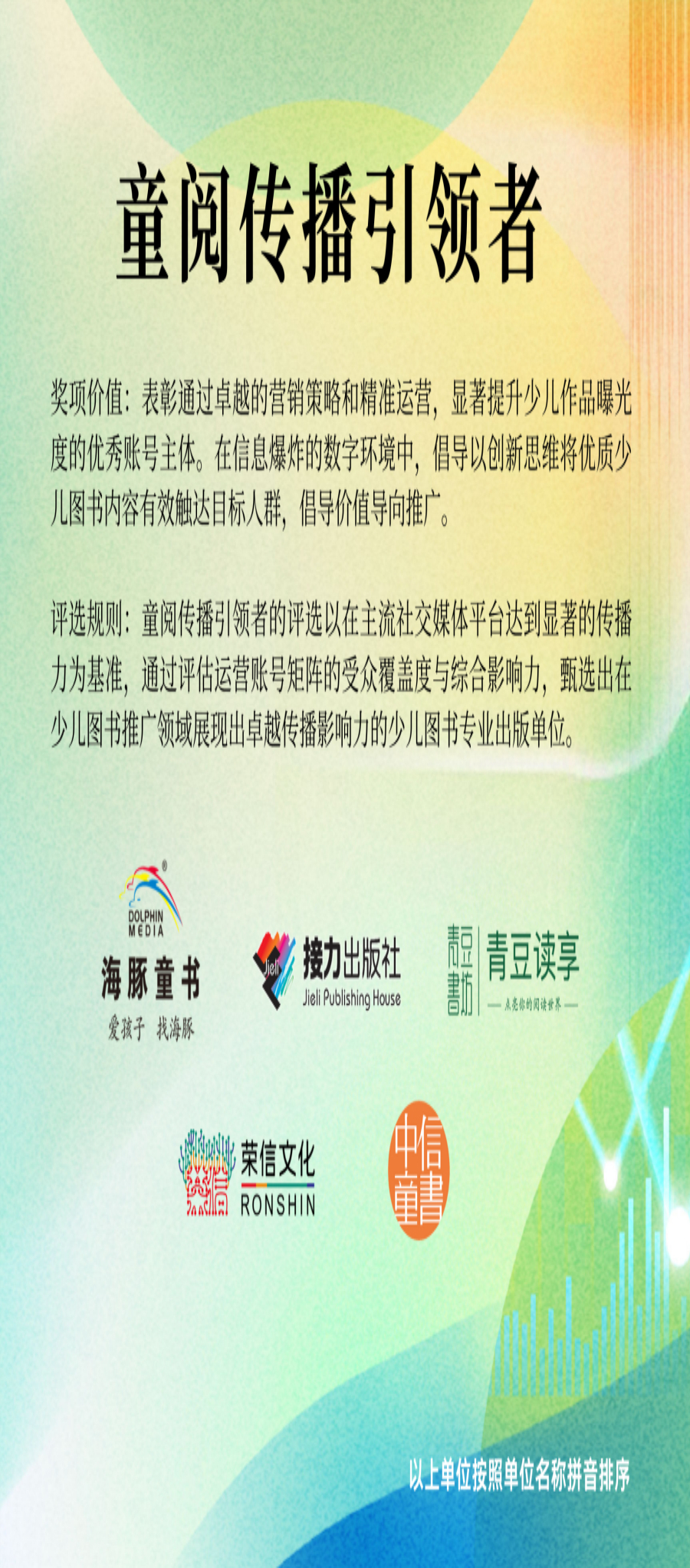 据了解,童书“引领者”榜单旨在发掘具有文化影响力、创新驱动力和社会责任感的童书出版力量,与业界共同努力,重塑行业规范,推动中国童书出版高质量发展,为广大少年儿童打造更优质的精神家园。
