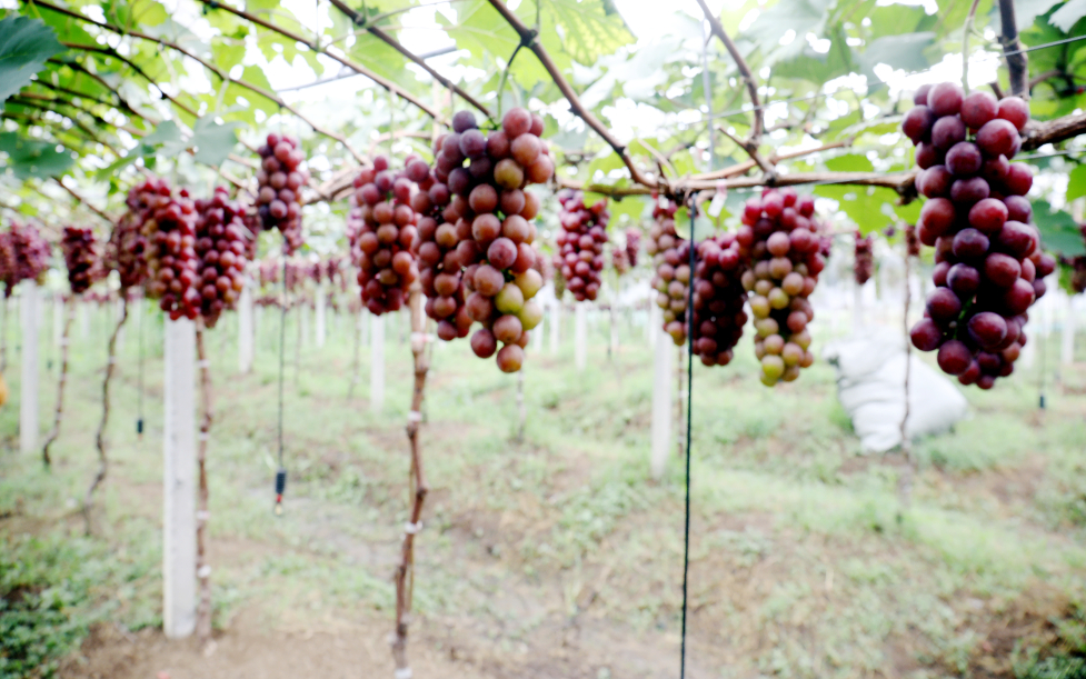 盛夏七月,广西贺州市平桂区公会镇解元村乡村振兴实践区的连片葡萄大棚内生机盎然。葡萄挂满藤蔓,颗颗晶莹饱满,在阳光下散发着诱人的果香。