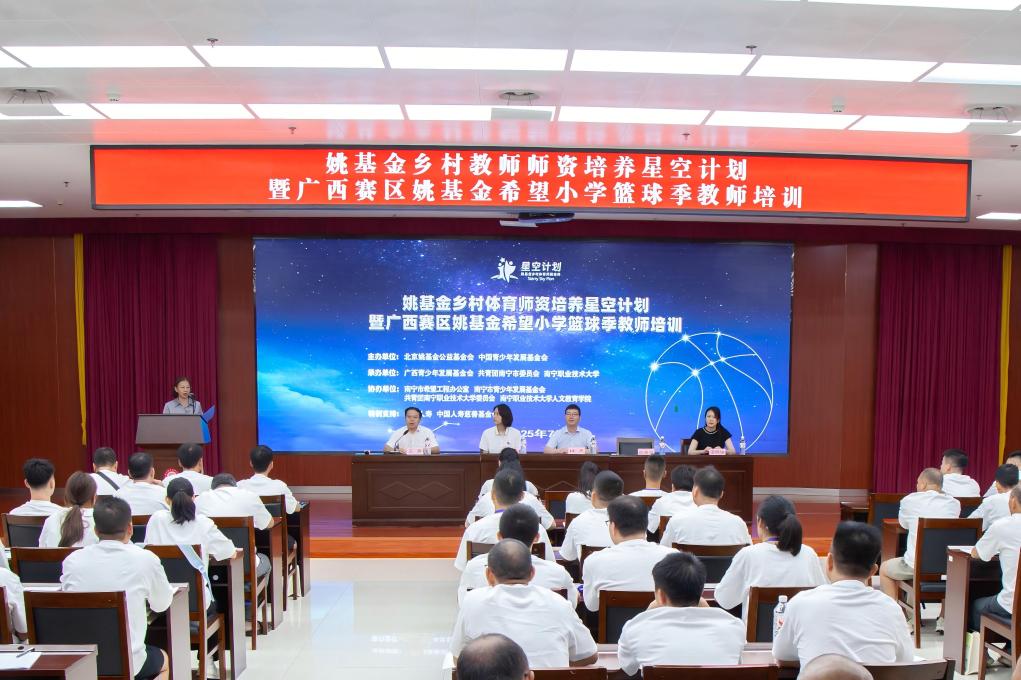 新华网南宁7月21日电(记者黄浩铭)7月21日,“2025姚基金乡村体育师资培养星空计划暨广西赛区姚基金希望小学篮球季教师培训班”在南宁正式开班。本期培训从天等县、龙州县遴选出50名乡村小学体育教师参加为期6天的集中培训。