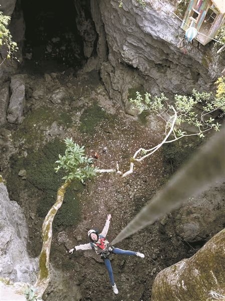 “在这玩速降,脚下是百丈悬崖,头顶是蓝天白云,这种感觉太酷了。”山西游客王先生在白洞天坑速降基地体验完速降项目后,兴奋地说道。