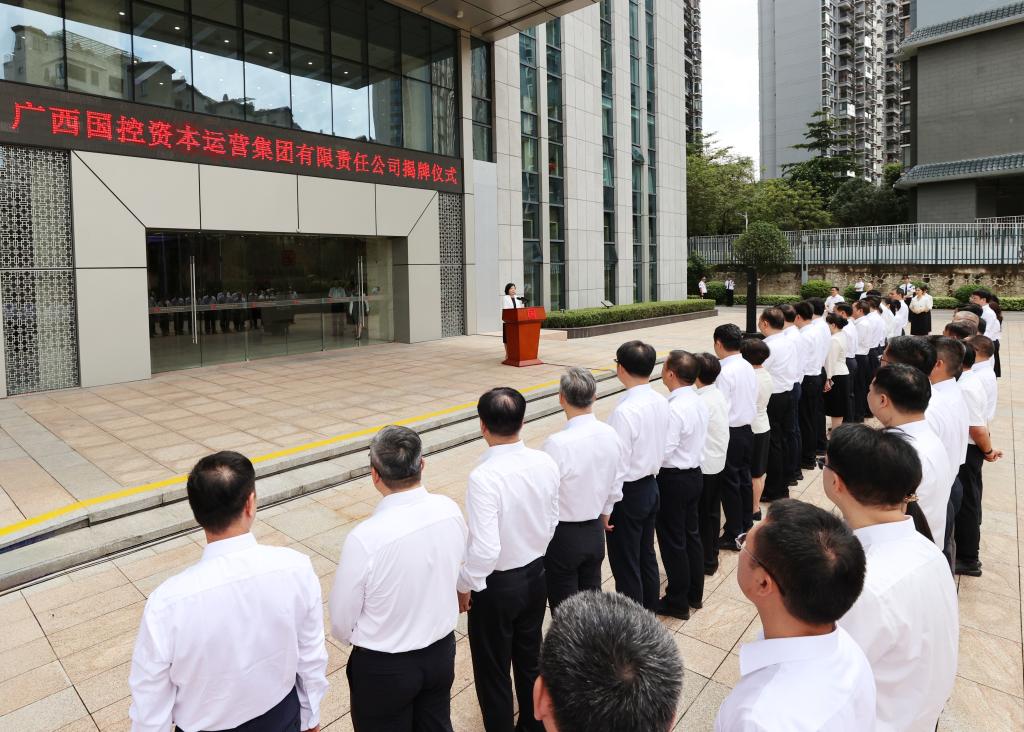 新华网南宁7月23日电(刘冰、华峻卿)23日上午,广西国控资本运营集团有限责任公司(以下简称“广西国控集团”)揭牌仪式在南宁举行。