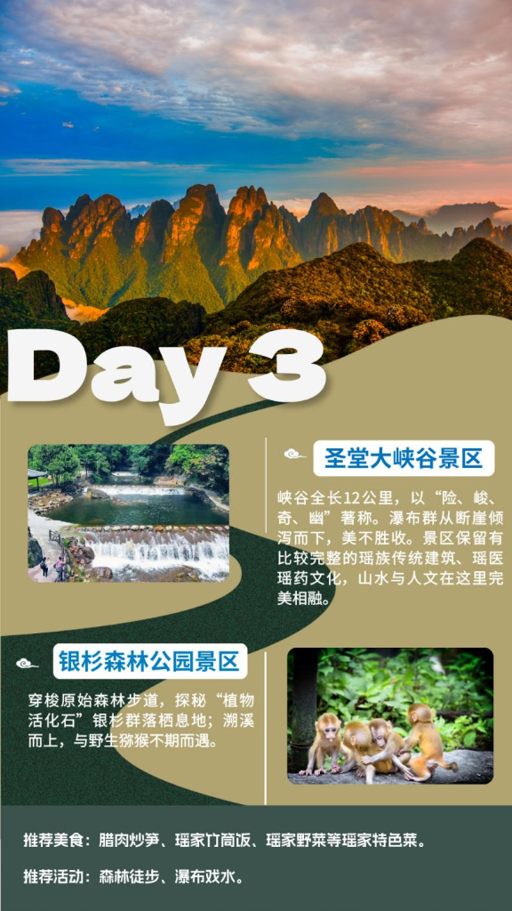 游圣堂峡谷、寻银杉绿荫、赏山水瑶城风光、品瑶族美食、泡瑶族药浴……这个盛夏,一起到21℃的金秀,开启一场康养避暑之旅吧。