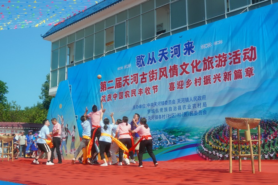 近日,广西河池市罗城仫佬族自治县天河镇第二届天河古街风情文化旅游活动暨第七届上朝西瓜节启幕。各地游客共同参与这场集农趣、民俗、书香于一体的乡村活动,感受党建引领下乡村发展的新气象。