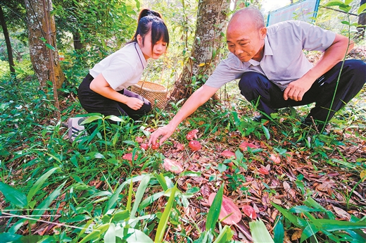 “红椎林是公益林,作为林主,我们的责任是守护好它——不能砍伐,定期清除杂灌,保持通风透光、林地湿润。否则,红菇可能长不出来,或者品质不佳。”容家良说。