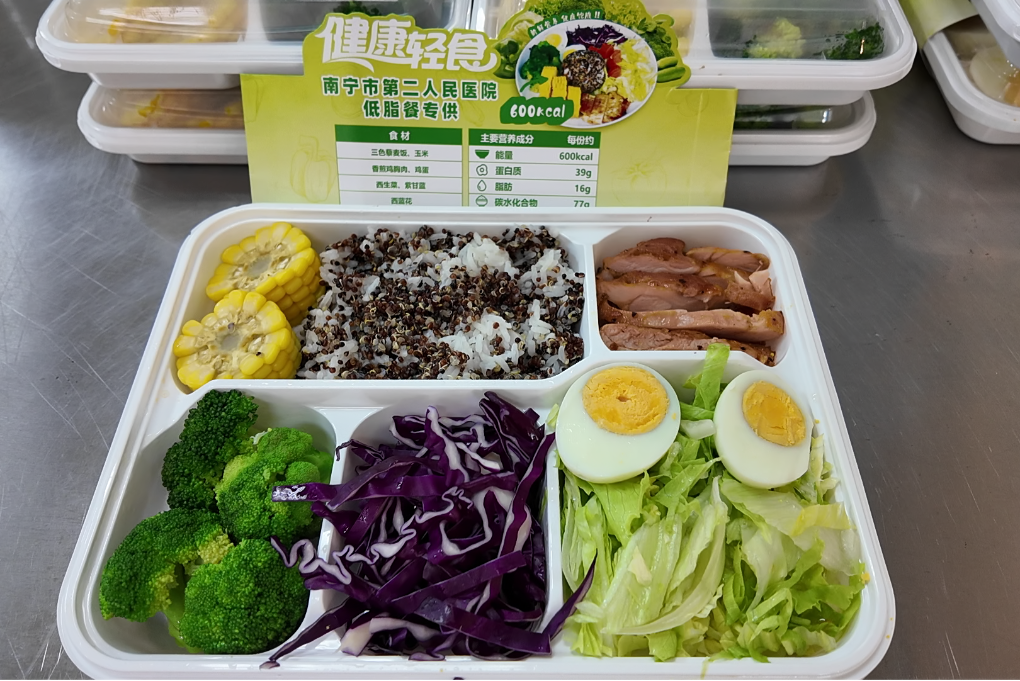南宁市第二人民医院临床营养科主任、肥胖代谢减重诊疗中心副主任、主任医师孙桂丽介绍,低脂套餐的研发响应国家卫健委“健康体重管理年”行动计划,旨在引导公众均衡饮食、合理搭配。餐食科学配比三大营养素,碳水化合物占比约50%,蛋白质占比20%-25%,脂肪占比约20%。烹饪方式以蒸、炖、灼及少油煎为主,并搭配自制橄榄油、醋汁等调味品控制油盐摄入。
