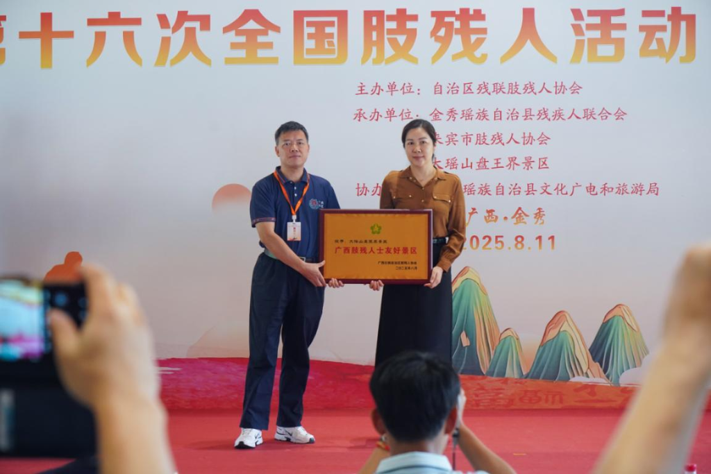 自治区残联肢残人协会主席欧阳义芳阐述了推动无障碍环境建设和保障残疾人平等权利的重大社会意义与时代责任。业内人士表示,大瑶山盘王界景区作为“全国山岳型无障碍示范景区”,为行业提供了无障碍设施从“覆盖”转向“体验优化”的鲜活样本。活动现场,自治区残联肢残人协会向景区授予“广西肢残人士友好景区”牌匾,以表彰其在无障碍旅游领域的探索。