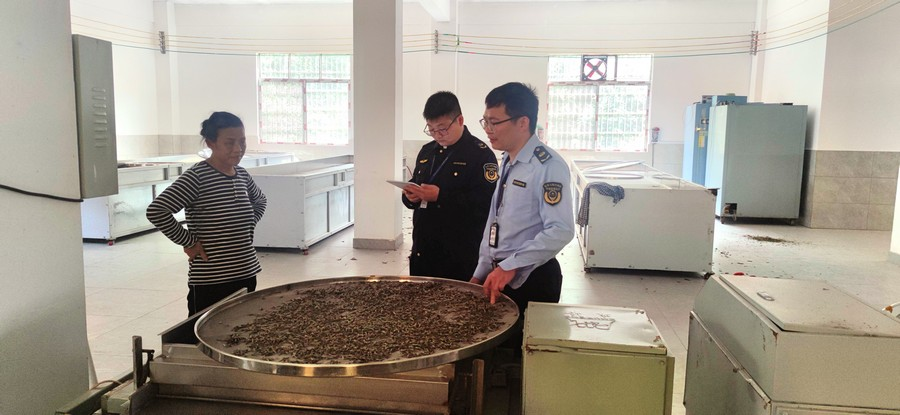 贺州市八步区市场监管局工作人员到开山白毛茶生产基地宣传地理标志产品申报事宜。
