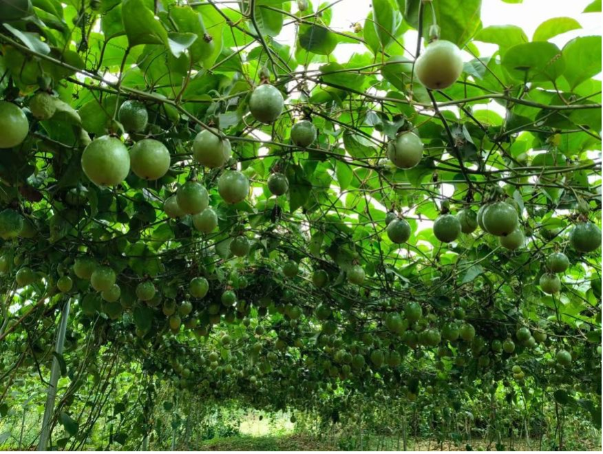 种植端同样充满科技含量。沙埠镇育苗基地通过温湿度传感器、自动淋水车等设备,构建出“智慧种苗管理系统”。在那思镇定蒙村,70亩示范园采用水肥一体化系统,每亩节水30%、节肥40%,亩产突破2000公斤。平棚垂帘式栽培技术使单株年产量提升至80斤,是传统品种的3倍。钦州的百香果种苗供应全国50%的市场需求。