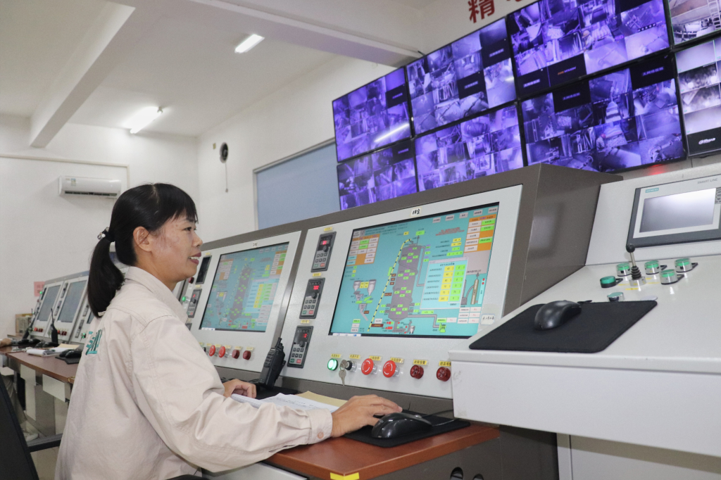 工作人员正在远程操作窑炉生产。 李宇安 摄